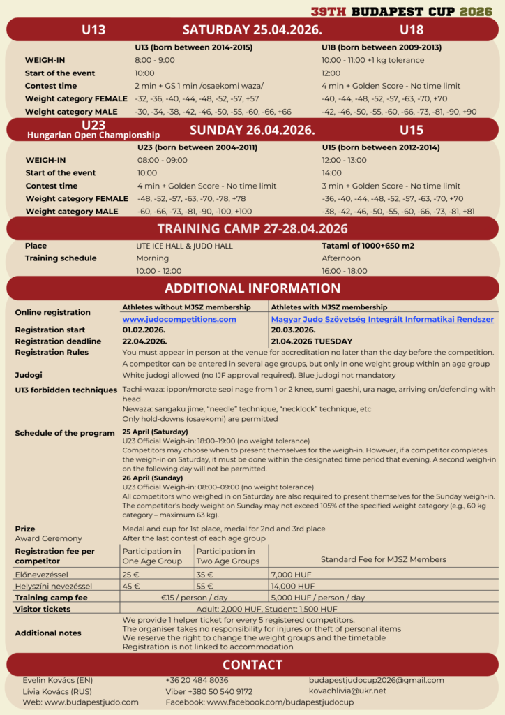 This year, the traditional Budapest Judo Cup will be held for the 39th time.