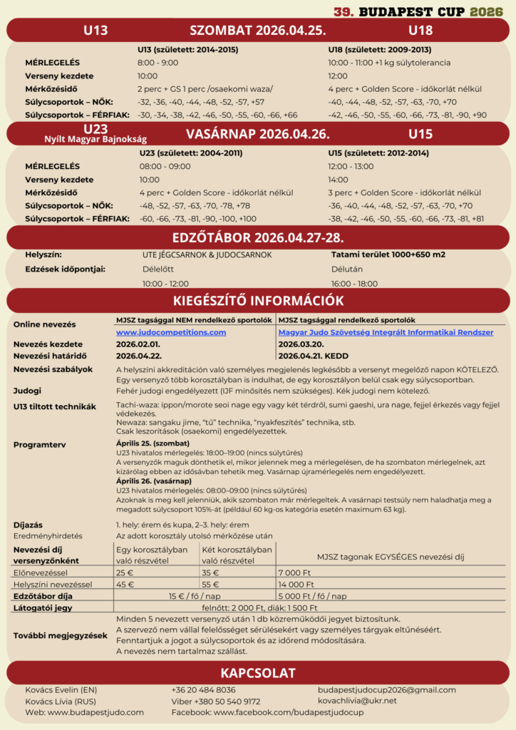 Idei évben 39. alkalommal kerül megrendezésre a tradicionális Budapest Judo Kupa.