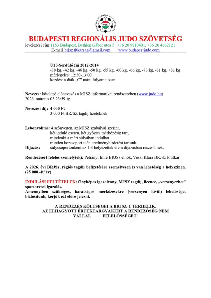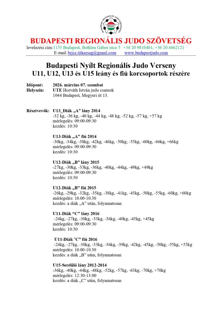 Budapesti Nyílt Regionális Judo Verseny 2026.03.07.